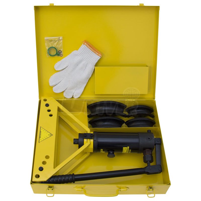 Přenosná hydraulická ohýbačka ocelových trubek a trubek z barevných kovů o průměru 3/8", 1/2", 3/4" a 1" se vyznačuje tuhou konstrukcí, ohýbací silou 6 t a úhlem ohybu až 90°.- pro ohýbání trubek z běžné oceli, nerezových trubek, trubek z barevných kovů apod.