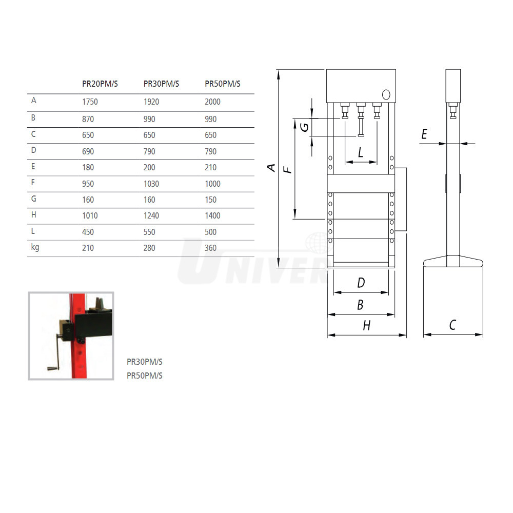 Hydraulické lisy WERTHER PR20PM/S / PR30PM/S / PR50PM/S