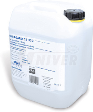 052246 - speciální chladicí kapalina na bázi glykolu (CORAGARD) CS 330 v plastové nádobě (10 l) pro kapalinou chlazené svařovací přístroje, používá se buď neředěná (mrazuvzdornost do -20°C) nebo ředěná destilovanou vodou v poměru (1 díl CS 330 a 4 díly destilované vody pro použití při teplotách nad 0°C), antikorozní vlastnosti, výměna se doporučuje cca každé 2 roky
