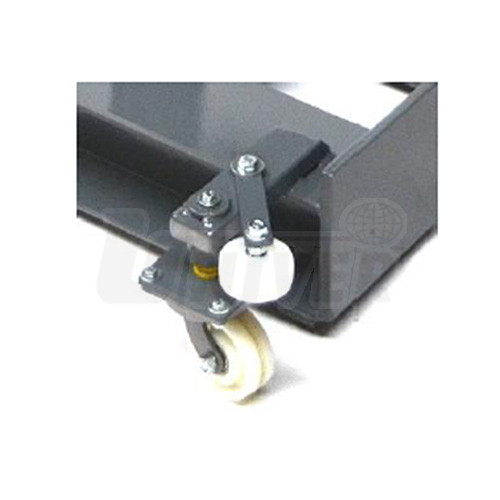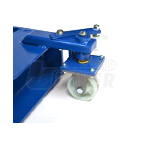 - 4 rotační kolečka namontovaná na zesílených pružinách, šířka vozíku 900 mm, 4 vodicí kolečka, při hmotnosti 1 000 kg jsou pružiny stlačeny a vozík je zafixovaný na podlahu, lze používat i mimo jámu, například pod zvedákem