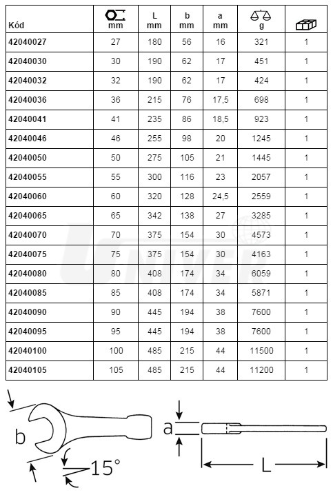 STAHLWILLE 4204 60 Jednostranný otevřený úderový klíč