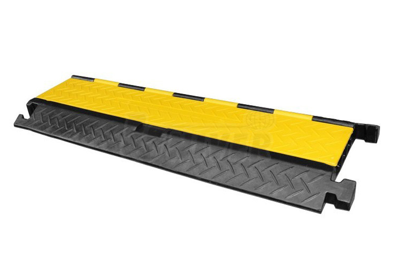 Pryžový kabelový přejezd se 3 kanálky a víkem slouží k ochraně kabelů, hadic, trubek atd., které jsou položené přes vozovku, komunikace pro chodce, chodníky, vnitřní komunikace v objektech apod.- kabelový přejezd pro ochranu na zpevněném povrchu položených kabelů, hadic, trubek atd.