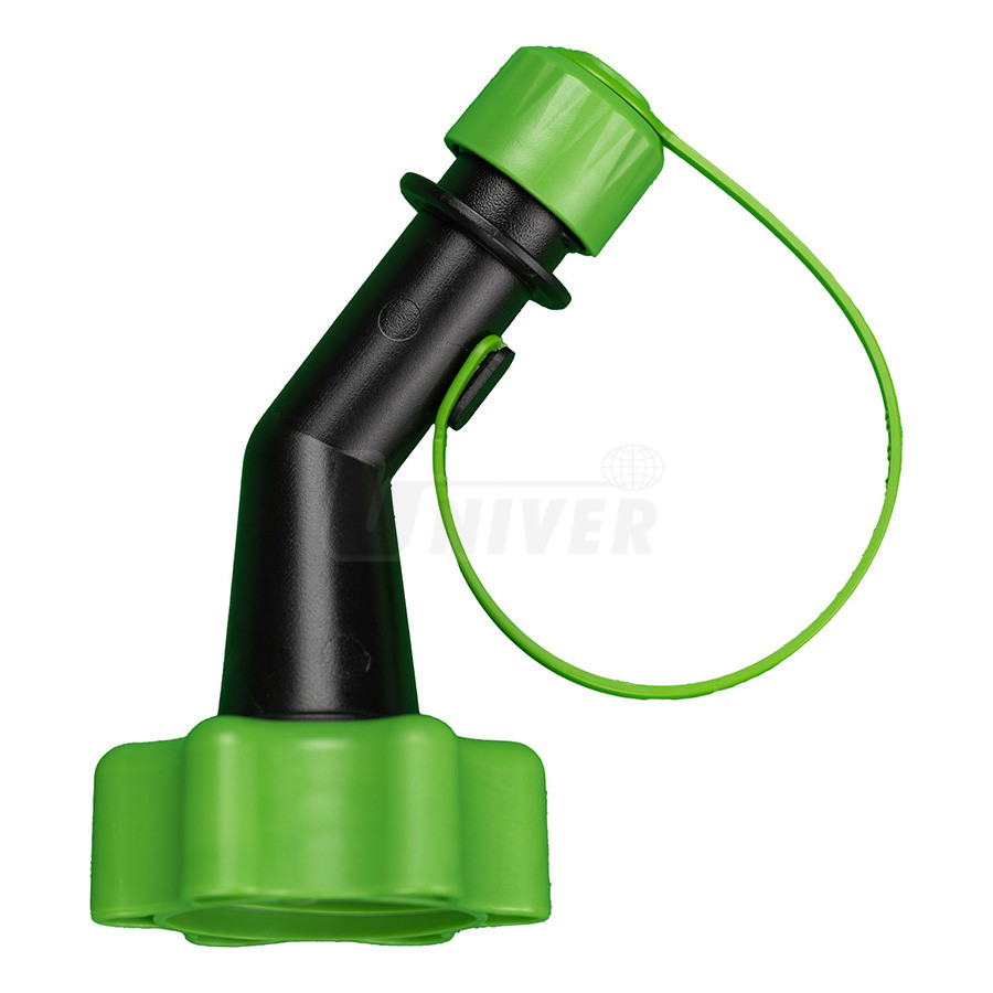 21 083 001 – standardní výtokový nástavec pro olej, průměr na výtokovém konci 22,4 mm, délka 127,5 mm, materiál: POM, materiál těsnění FKM, barva černá + zelená
