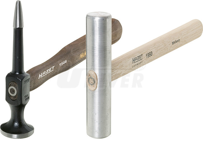 Karosářská vyklepávací kladiva mají hlavice z oceli (HAZET 1944) nebo z hliníku (HAZET 1950). Násady jsou z extrémně tuhého, ale ohebného dřeva Hickory.1950 - hliníkové rozklepávací/tepací kladivo, 2 kulaté konce hlavice (Ø 30 mm), délka kladiva 310 mm.