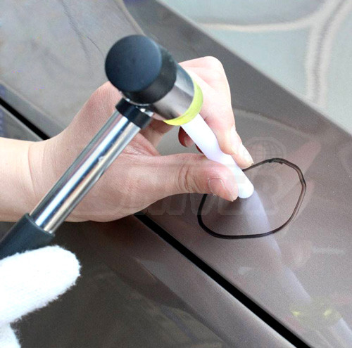 Kladivo se 2 výměnnými hlavicemi Ø 25 mm (guma / plast) s kovovou násadou opatřenou krytem z měkčené pryže pro opravy promáčklin technologií PDR.- opravy důlků a promáčklin na karosériích vozidel technologií PDR (Paintless Dent Repair) se provádějí pomocí speciálního nářadí a pomůcek za studena bez nutnosti provádět konvenční tmelení, broušení a lakování poškozeného místa, přičemž oprava vyžaduje méně času a je levnější