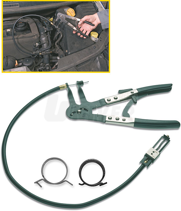 Kleště určené k montáži/demontáži páskových samosvorných hadicových spon zejména systémů chlazení a topení mají pružný bowden s umělohmotným pláštěm, automatickou aretaci k zajištění demontážní či montážní pozice a rukojeti s plastovým krytem. Umožňují práci jen jednou rukou, přičemž uvolnění zajišťovacího mechanismu se provádí knoflíkem v oblasti rukojetí. Bowden dovoluje práci se sponou i v obtížně přístupných místech, kde je nasazení klasických kleští na spony nemožné. Vynikají spolehlivostí a dlouhou životností i v náročném profesionálním nasazení. Délka kleští 875 mm, rozevření 7-60 mm.