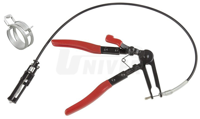 Kleště s adaptérem na pružném bowdenu dl. 660 mm se používají zejména při montáži / výměně samosvorných spon hadic, kde nelze použít běžné kleště na spony hadic.- osvědčené kleště na samosvorné spony různých hadic zejména v případě, že se jedná o obtížněji přístupná místa ve větší vzdálenosti, kde je použití klasických kleští na hadicové spony obtížné nebo nemožné