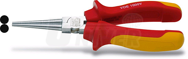 Kleště s kulatými čelistmi pro elektrikáře jsou vyrobeny z vysoce kvalitní oceli. Mají speciální dvoukomponentní ergonomické rukojeti, což umožňuje vysoký přenos síly na čelisti. Samozřejmostí je perfektně vyrobený kloub s velmi úzkou tolerancí rozměru otvoru pro čep. Povrch kleští - leštěný chrom. Délka 160 mm. Kleště jsou zkoušeny při napětí 10 000 V. Umožňují bezpečnou práci až do napětí 1000 V (EN/IEC 60900:2004).