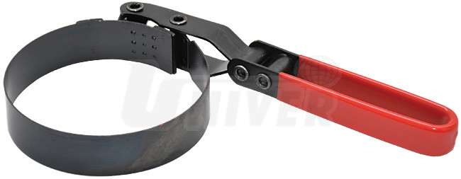 Páskový přípravek na olejové filtry s vinylovým krytím rukojeti a s kloubem má nastavitelný upínací pásek otočný o 180°, což zajišťuje optimální polohu upnutí i v stísněném prostoru. Rozsah upnutí olejových filtrů činí 85-95 mm.