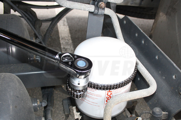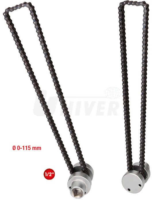 Řetězový klíč na olejové filtry, kartuše filtrů a patrony vysoušečů vzduchu do průměru 115 mm s vnitřním čtyřhranem 1/2".- řetězový klíč na olejové filtry, kartuše filtrů a patron vysoušečů vzduchu