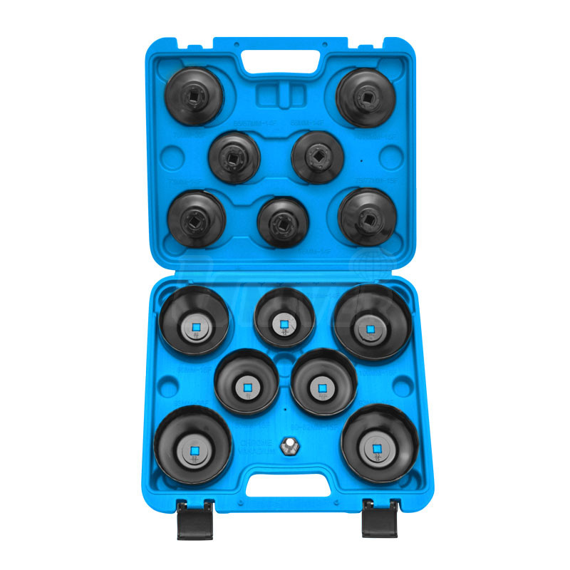 Sada obsahuje 15 kusů nejrozšířenějších rozměrů miskovitých klíčů na olejové filtry.- sada miskových klíčů na olejové filtry s různým rozměrem a počtem hran pro nejběžnější typy olejových filtrů (74/76 mm/15-hran, 76 mm/14-hran, 93 mm/15-hran, 65/67 mm/14-hran, 73 mm/14-hran, 80 mm/15-hran, 68 mm/14-hran, 93 mm/36-hran, 90 mm/15-hran, 75/77 mm/15-hran, 80/82 mm/15-hran, 65 mm/14-hran, 76 mm/30-hran, 100 mm/15-hran)