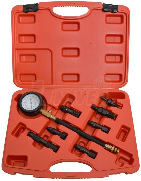 Přesný přístroj pro měření kompresního tlaku ve válcích zážehových / benzinových motorů přes otvory pro zapalovací svíčky.- přístroj pro měření kompresního tlaku ve válcích benzinových / zážehových motorů