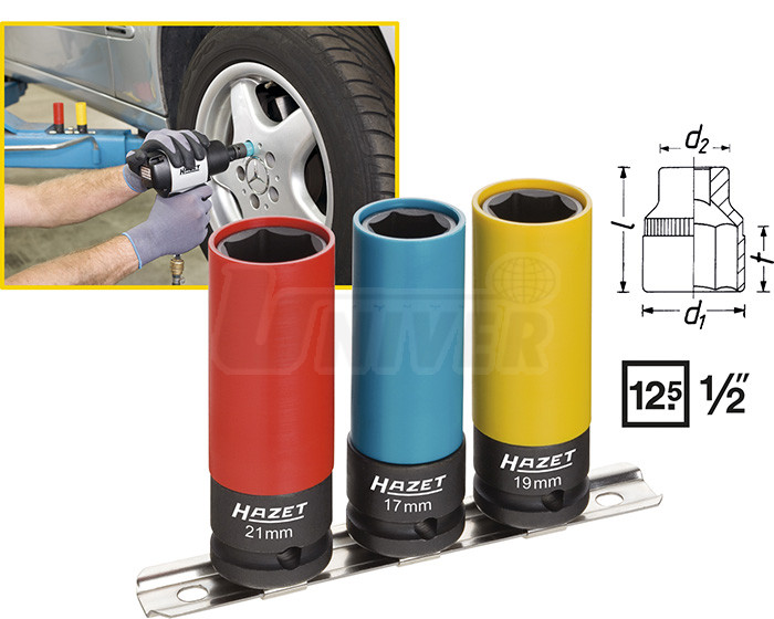 Kované šestihranné 1/2" 22 mm hlavice mají ochranný potah, který zabraňuje poškození hliníkových disků při montáži/demontáži kolových šroubů zejména při použití pneumatického utahováku. Vyznačují se dlouhým provedením a barevným rozlišením rozměrů.Hlavice 903 SLg-21 se používá zejména u japonských automobilů a vozů Smart For-Four. Hlavice 903 SLg-22 nalézá uplatnění u vozů Opel Insignia.
