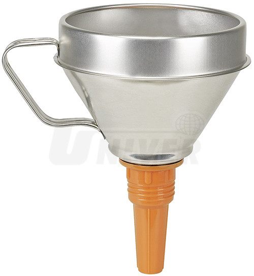 Kvalitní trychtýře z bílého plechu s vyšším límcem, držadlem a bezpečnostním plastovým výtokovým nástavcem. Dobře odolávají olejům, kyselinám, pohonným hmotám, příp. prasknutí. Mají vyměnitelné mosazné jemné vnitřní sítko (01 172).Použití: díky vysokému průtočnému množství - průmysl, opravárenství, řemeslná výroba, dílny apod.