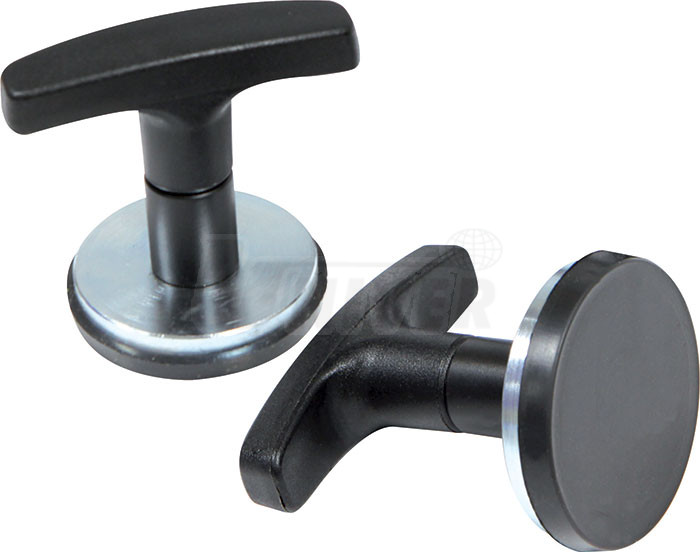 Sada 2 ks držáků s kruhovou permanentní magnetickou částí s T-rukojetí pro uchycování ochranných dek proti žáru.