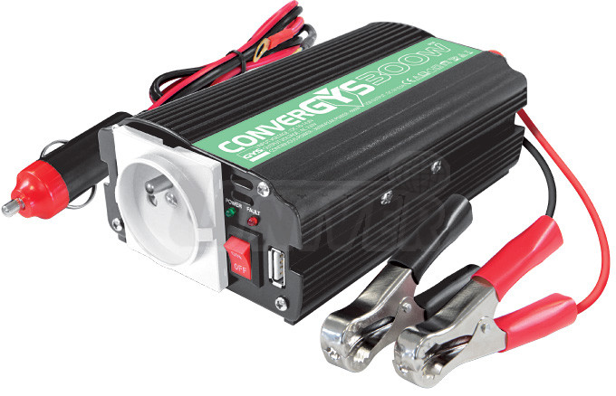 Kvalitní měnič stejnosměrného napětí 12 V na střídavé 230 V s průběhem podobným sinusovému, které je vhodné pro napájení mnoha elektrických a elektronických přístrojů (mobilní telefony, videokamery, PC, laptopy, DVD přehrávače, menší vysavače, vysoušeče vlasů, televizory, osvětlovací tělesa atd.). Přístroj má 1 zásuvku AC 230 V a také zásuvku USB rozhraní (5 V - 500 mA) pro připojení kompatibilních přístrojů (ne pro výměnu dat), např. MP3 přehrávačů, digitálních kamer apod.Přístroj s integrovaným ventilátorem se připojuje do zásuvky zapalovače cigaret vozidla nebo přímo na baterii vozidla a je chráněný proti přehřátí, přetížení, přepětí i podpětí.