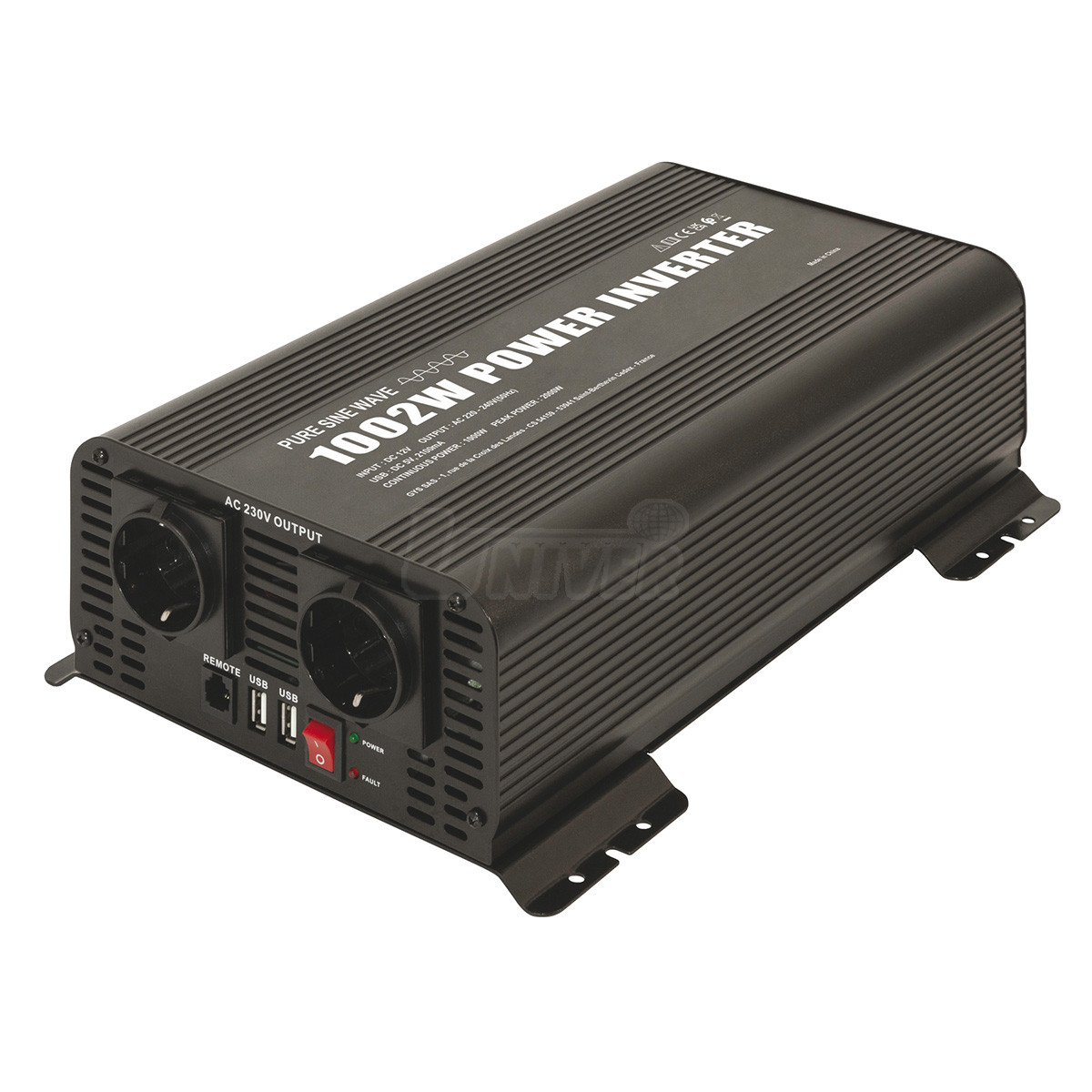 Kvalitní měnič stejnosměrného napětí 12 V na střídavé 230 V s průběhem čistě sinusovým až do 1000 W s dálkovým ovládáním.- pro napájení elektrických přístrojů (mobilní telefony, videokamery, laptopy, přehrávače, televizory, osvětlovací tělesa atd.) až do 1000 W