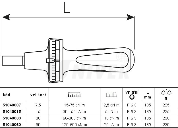 - porovnávací stupnice in•lb a vlečná ručička