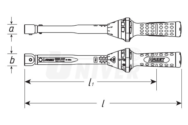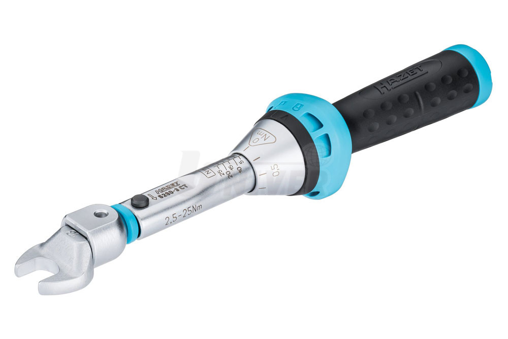 - snadné otáčení mnohostranným nástrčným nářadím HAZET 9 x 12 (např. jako plochý nebo očkový klíč, čtyřhranné nebo bitové přepínací ráčny) umožňuje utažení šroubů s pravotočivým nebo levotočivým závitem s přesným utahovacím momentem a tolerancí +/- 3 %