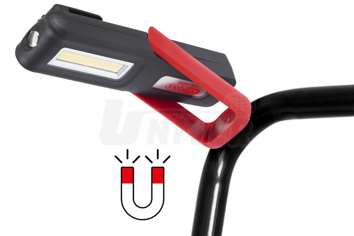 Montážní / inspekční lampa s bočním světlem 3 W COB a čelním LED s výklopným stojanem (magnetickým držákem).- ideální montážní / inspekční lampa pro práci bez možnosti připojení k síti
