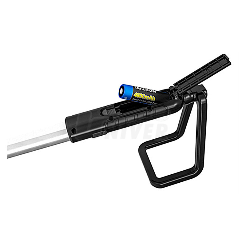 Závěsná akumulátorová montážní lampa s odolnou aluminiovou teleskopickou konstrukcí a 3 úrovněmi světelného toku.
