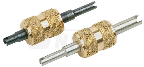 Montážní přípravky pro ventily Schrader v klimatizacích s chladivem R134a vozů např. Ford nebo japonských značek. Pro vysoko- a nízkotlak jsou připojovací rozměry 6,3 a 4,5 mm.8885300037 - univerzální a pro vozy Ford i japonské automobily