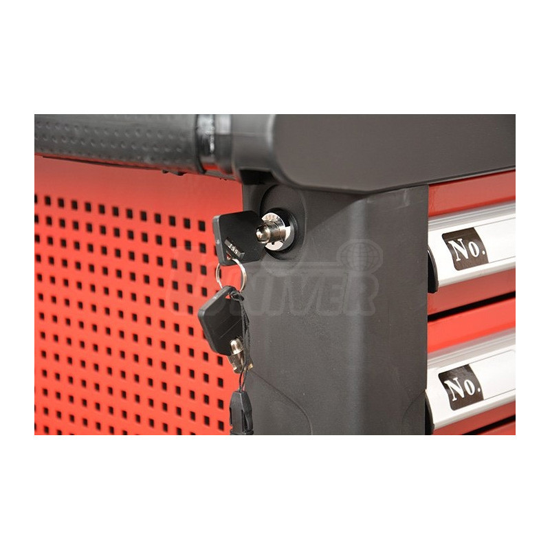 Víceúčelový montážní vozík tvoří horní odkládací deska a 7 zásuvek uložených v kuličkových ložiskách (5 nízkých 6 cm, 1 střední 12 cm a 1 vysoká 19 cm). Zásuvky (s popiskovými lištami) jsou opatřeny bezpečnostní západkou proti samovolnému otevření. Bezpečnostní uzamykací systém (2x klíč). Speciální plastová ochrana všech rohů proti poškození při případném nárazu. Vozík má 4 kolečka (2 pevná, 2 otočná s poziční brzdou). .Rozměry: 690 mm (770 mm vč. držadla) x 465 mm x 970 mm
