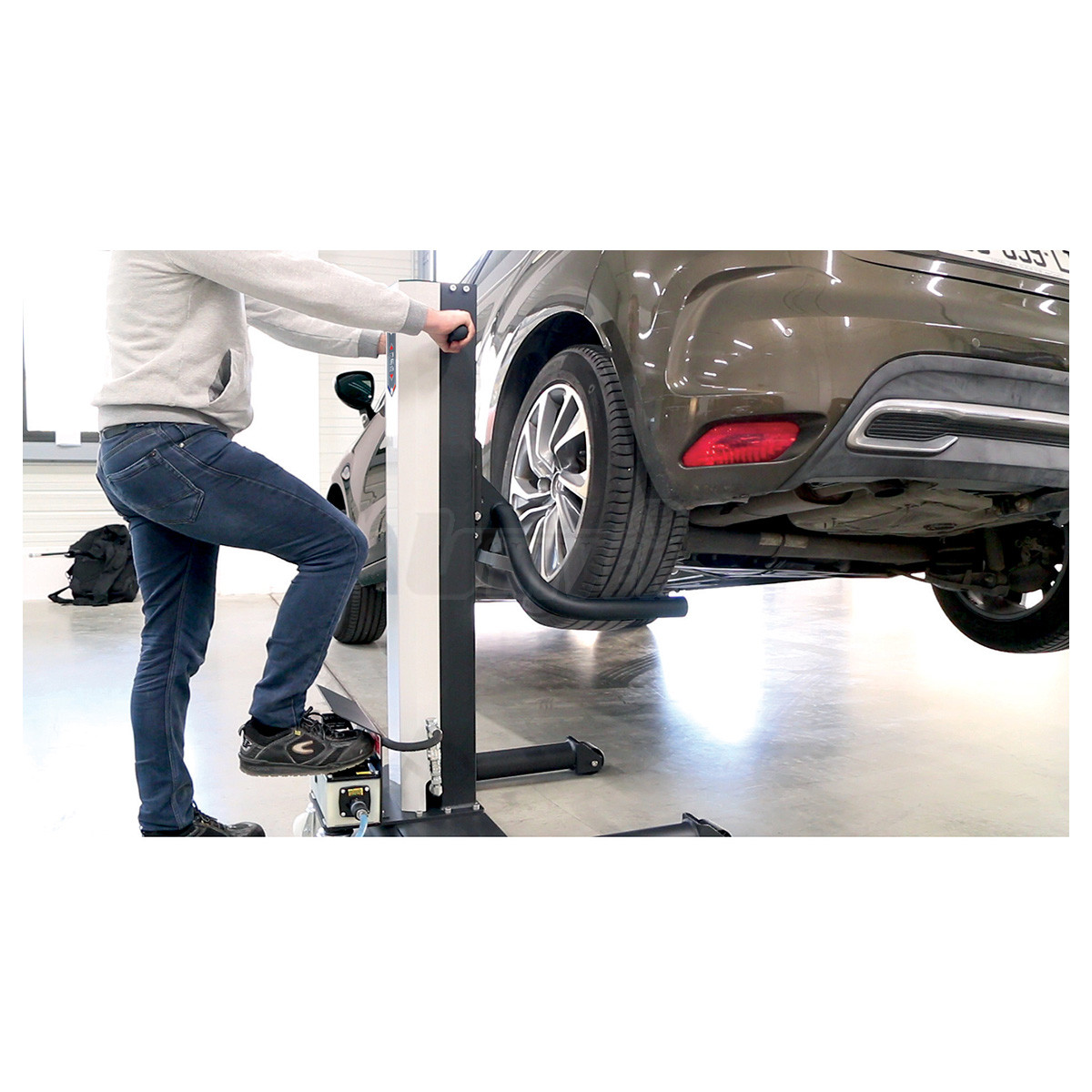 - 2 otočná kolečka na zadní straně podvozku usnadňují nastavení vůči zvedanému vozidlu