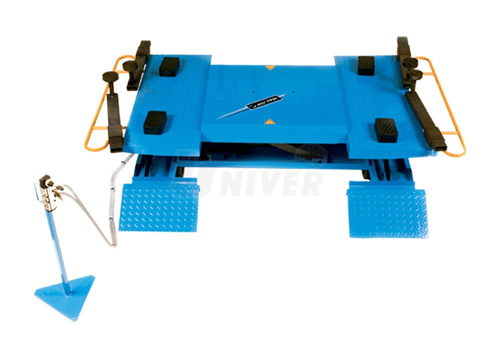 Pneumatický nízkozdvižný zvedák s nosností 2000 kg pro zvedání osobních a dodávkových automobilů s dálkovým ovládáním joystickem.