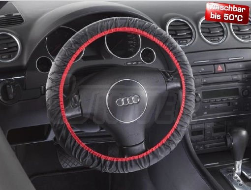 Nylonový ochranný povlak na volant s gumovými stahovacími pásky lze prát (až do 50°C).- barva: černá (bez potisku)