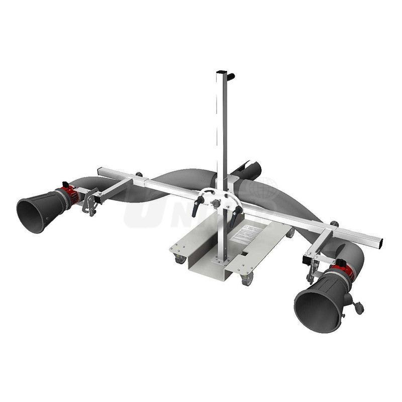 Trychtýře pro odsávání výfukových plynů mají vyústění na výfuk Ø 160 mm, 2 hadice Ø 75 a Ø 100 mm, Y-kus a pojízdný nastavitelný stativ.