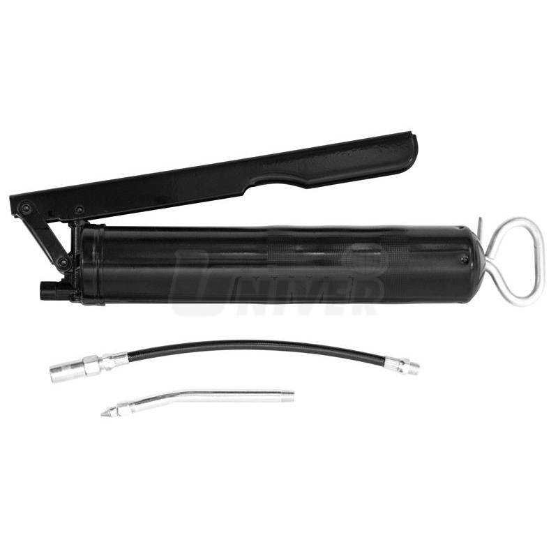 Ruční pákový mazací lis pro tlakové mazání běžnými plastickými mazivy. Lis má speciální povrchovou úpravu (prášková technologie), odolávající ve zvýšené míře mechanickému opotřebení i působení řady chemikálií.Dodává se s ohebnou vysokotlakou hadicí s mazací koncovkou (délka 240 mm, tlak 4500 PSI) a pevným zahnutým kovovým nástavcem s mazací koncovkou (délka 150 mm).