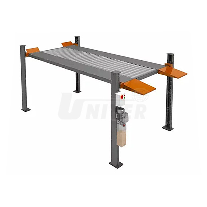 Komfortní čtyřsloupový hydraulický parkovací zvedák s nosností 3600 kg, robustní konstrukcí a extra širokými plošinami i pro velké automobily (např. SUV a terénní).- na stání osazené tímto zvedákem mohou současně parkovat 2 automobily, jeden na podlaze, druhý na plošinách zvedáku