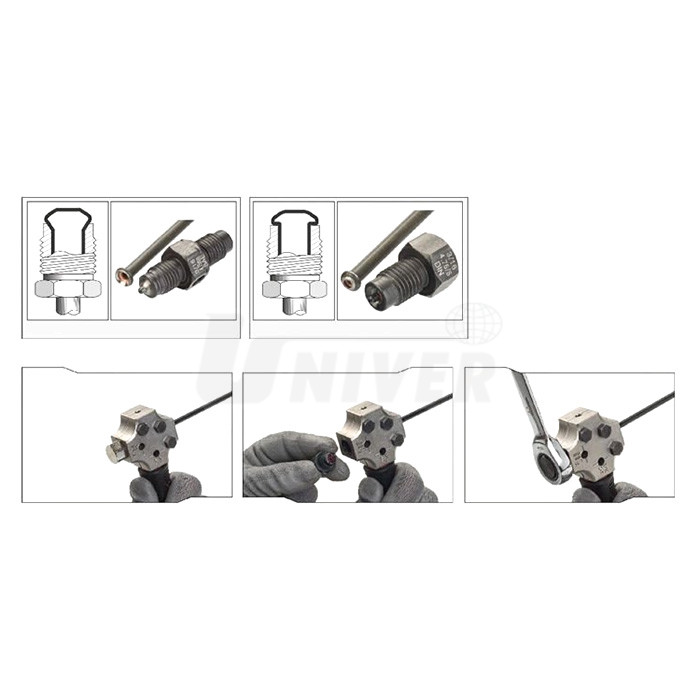 Pertlovací sada pro úpravu konců brzdových trubiček Ø 4,75 mm vylisováním připojovacího lemu podle norem DIN a SAE.- uplatní se zejména při zhotovování lemu / osazení na brzdových trubičkách přímo na vozidle