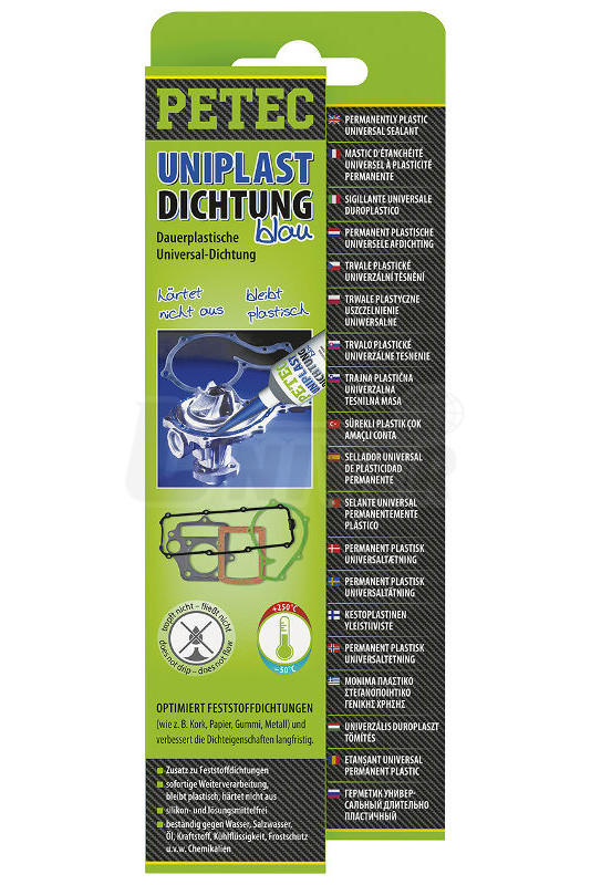 Trvale plastická, univerzální těsnicí hmota modré barvy na bázi polyuretanu v tubě (80 ml) je vysoce odolná a dokonale těsní různé montážní spoje.- má široký rozsah použití, dokonale těsní nejrůznější montážní spoje součástí automobilových agregátů, převodovek, strojů, turbin atd.
