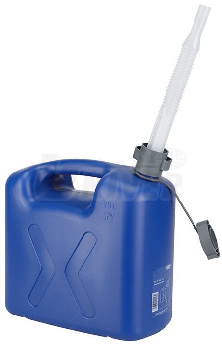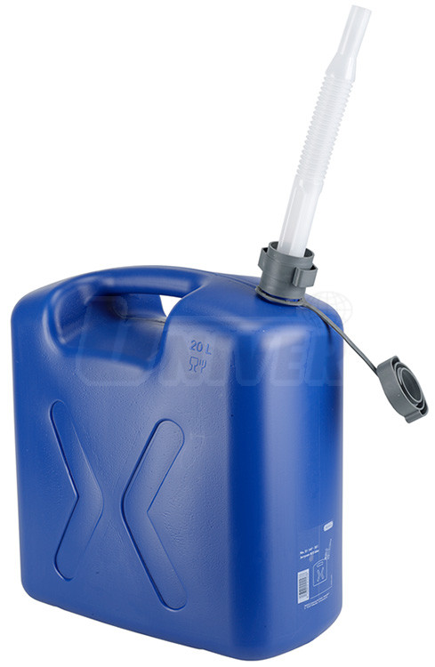Kvalitní plastové kanystry 5 l / 10 l / 20 l s oddělitelným pružným výtokovým nástavcem (Ø 20 mm), integrovaným odvětráním a uzavíracím víčkem na fixačním pásku. Jsou odolné i proti silným nárazům. Výtokové nástavce jsou uloženy zasunuté v kanystrech. Ty se mohou používat na vodu, různé další kapaliny a to i potravinářského charakteru. Nejsou však použitelné pro pohonné hmoty (benzin, nafta apod.).Použití: průmysl, řemeslná výroba, dílny, domácnosti apod.