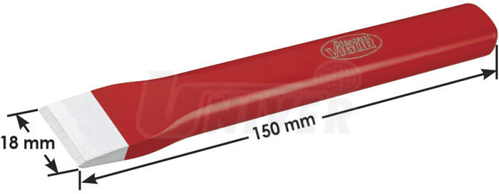 Plochý sekáč je vyroben z chrom-vanadia. Má rozměry 18 x 150 mm.
