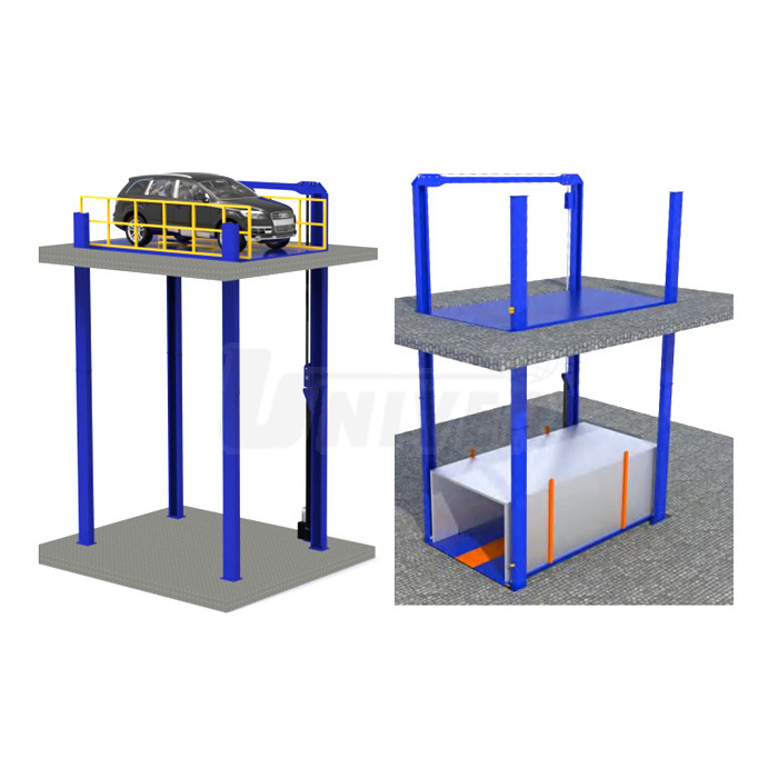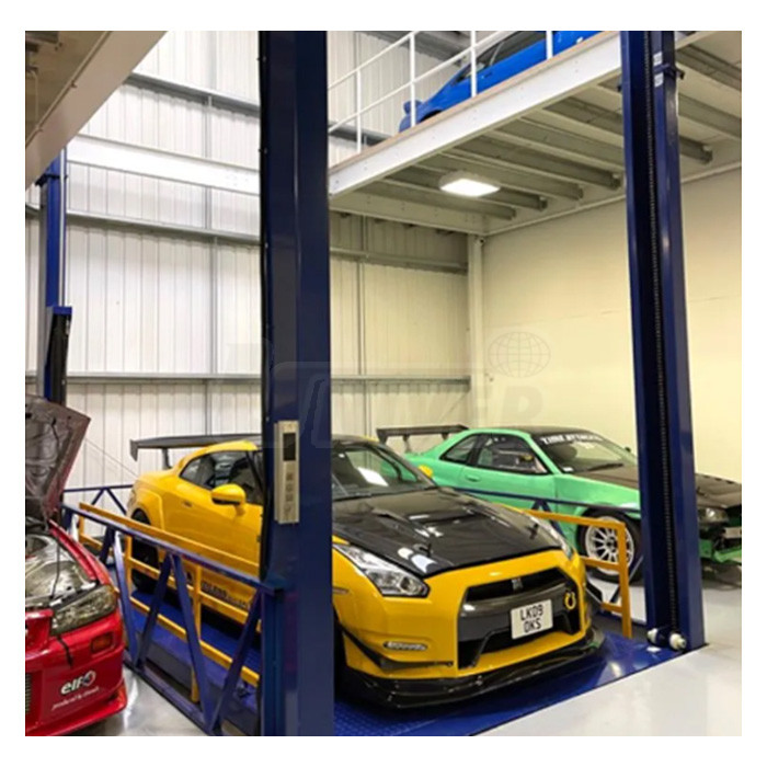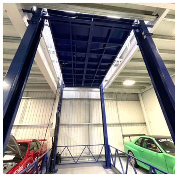 Plošinový čtyřsloupový hydraulický výtah pro automobily s nosností 4 t s výškou zdvihu 10 500 mm s výtahovou plošinou bez kabiny nebo s kabinou.- kvalitní hydraulický motor Lisheng (volitelně i značky ABB nebo Siemens)