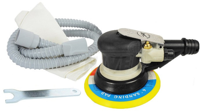 Excentrická jednoruční kotoučová bruska pro kotouče o průměru 150 mm se separátním odsáváním prachu přes hadici do sáčku.- pneumatická jednoruční bruska s excentrickým pohybem brusného kotouče o průměru 152 mm