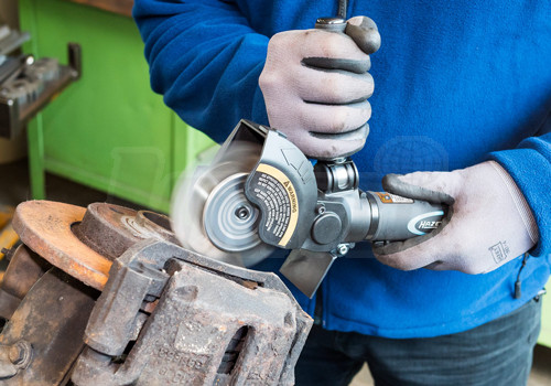 Pneumatická multi bruska s lamelovými kotouči a kartáčovými adaptéry k odstraňování, nátěrových a těsnicích hmot, fólií apod.- podle potřeby se do brusky nasazují lamelové kotouče, kartáčové adaptéry nebo odstraňovací kotoučky