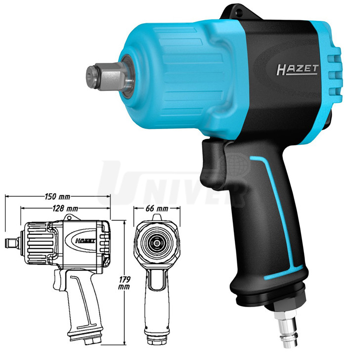 Pneumatický rázový utahovák v provedení Twin Turbo 1/2" s vysokým výkonem a tepelně izolovanou rukojetí.- pneumatický rázový utahovák, krátké provedení (jen 128 mm), s velmi malou hmotností jen 1,6 kg