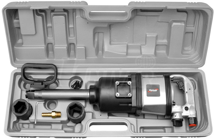 Sadu tvoří pneumatický rázový utahovák Hymair AT-9981 s příslušenstvím, který se používá např. v pneuservisech pro montáž / demontáž kol nákladních automobilů a autobusů, ale i v průmyslu atd.- vysoce výkonný rázový utahovák 1“ / 3200 Nm v sadě s příslušenstvím