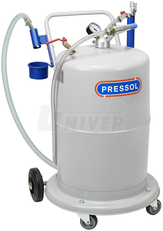 Pojízdná pneumatická odsávačka vyjetého oleje se zásobníkem o objemu 75 l renomovaného německého výrobce PRESSOL.Má