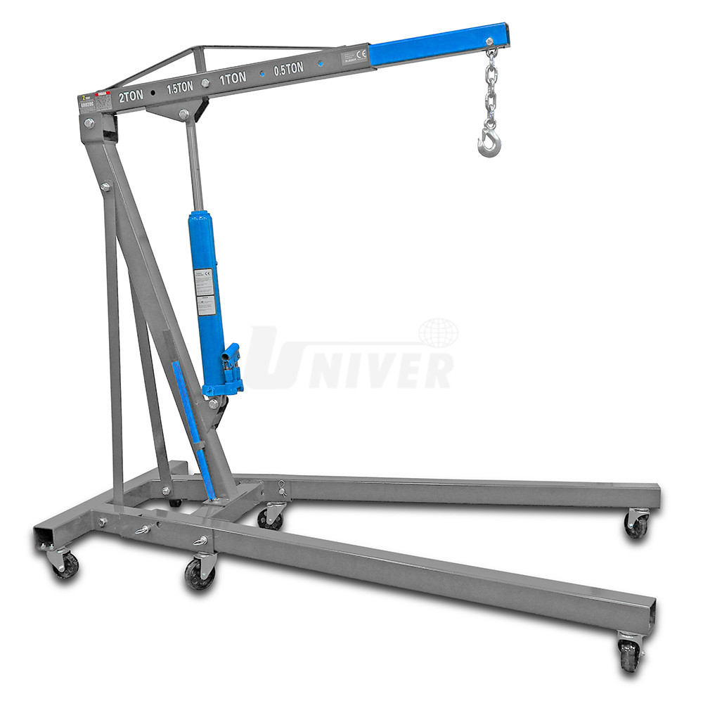 Pojízdný skládací hydraulický dílenský jeřáb ("žirafa") s maximální nosností 2 t