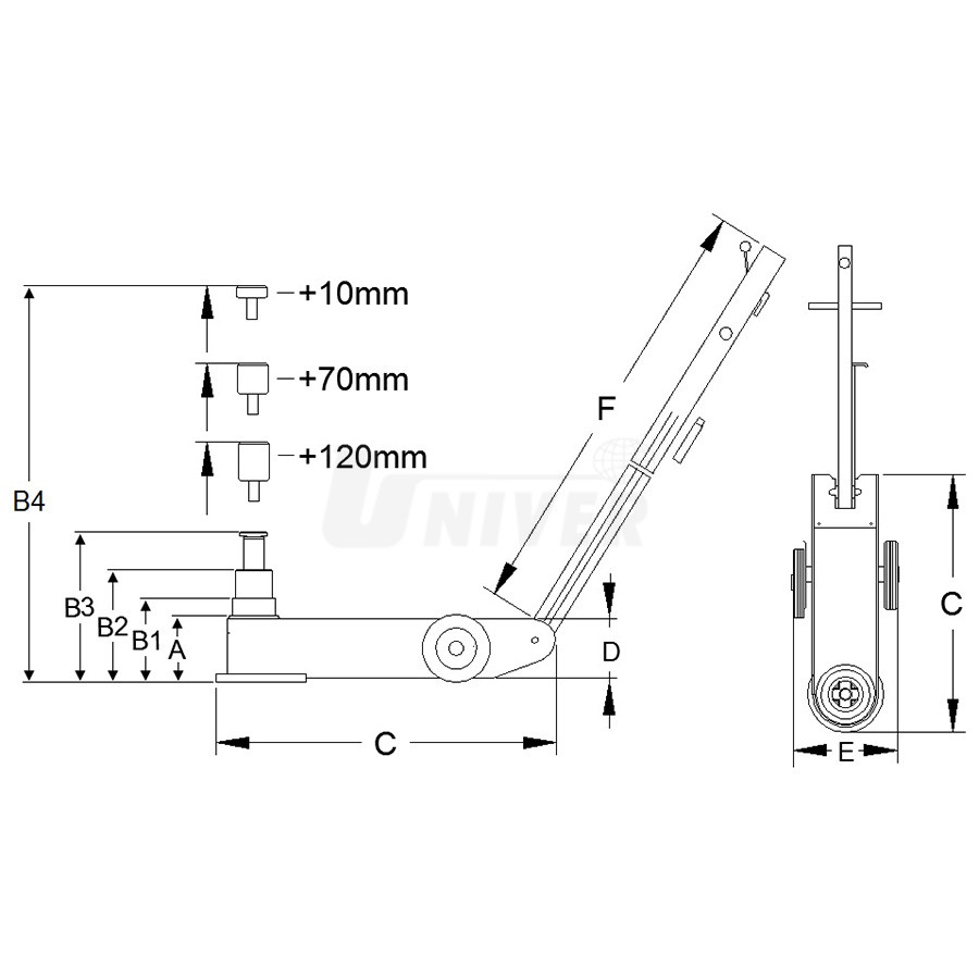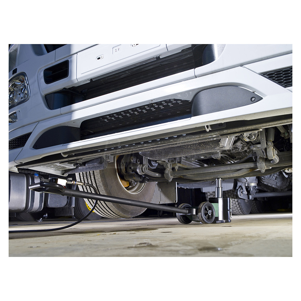 Pojízdný vysokozdvižný pístový pneumaticko-hydraulický dílenský zvedák s nosností 44 / 22 t ve dvou stupních.- jednostupňový válec s dlouhým zdvihem pístu, nosnost 28 t