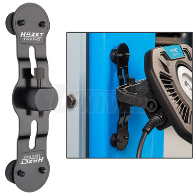 HAZET 1979F-02 magnetický držák, přídržná síla magnetu max: 10 kg, aretace pomocí přiloženého připevňovacího šroubu, dodatečná povrchová úprava magnetu zabraňuje poškození podkladu