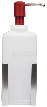 držák z nerezové oceli pro připevnění 1 l-láhví na stěnu v případě, že se na takovou láhev instaluje dávkovací pumpička