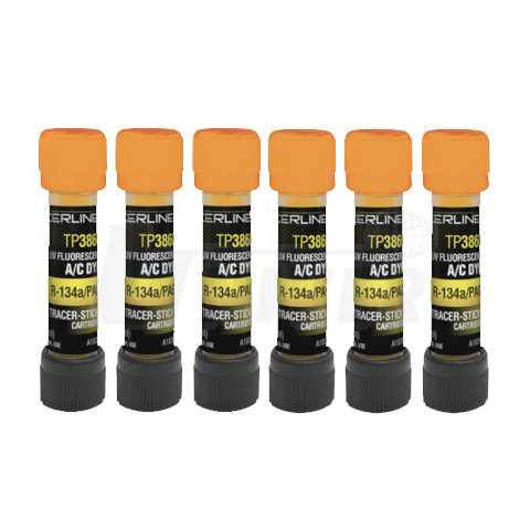 Sada 6 ks ampulí s přísadami pro zjišťování netěsností klimatizací s chladivem R134a a olejem PAG.