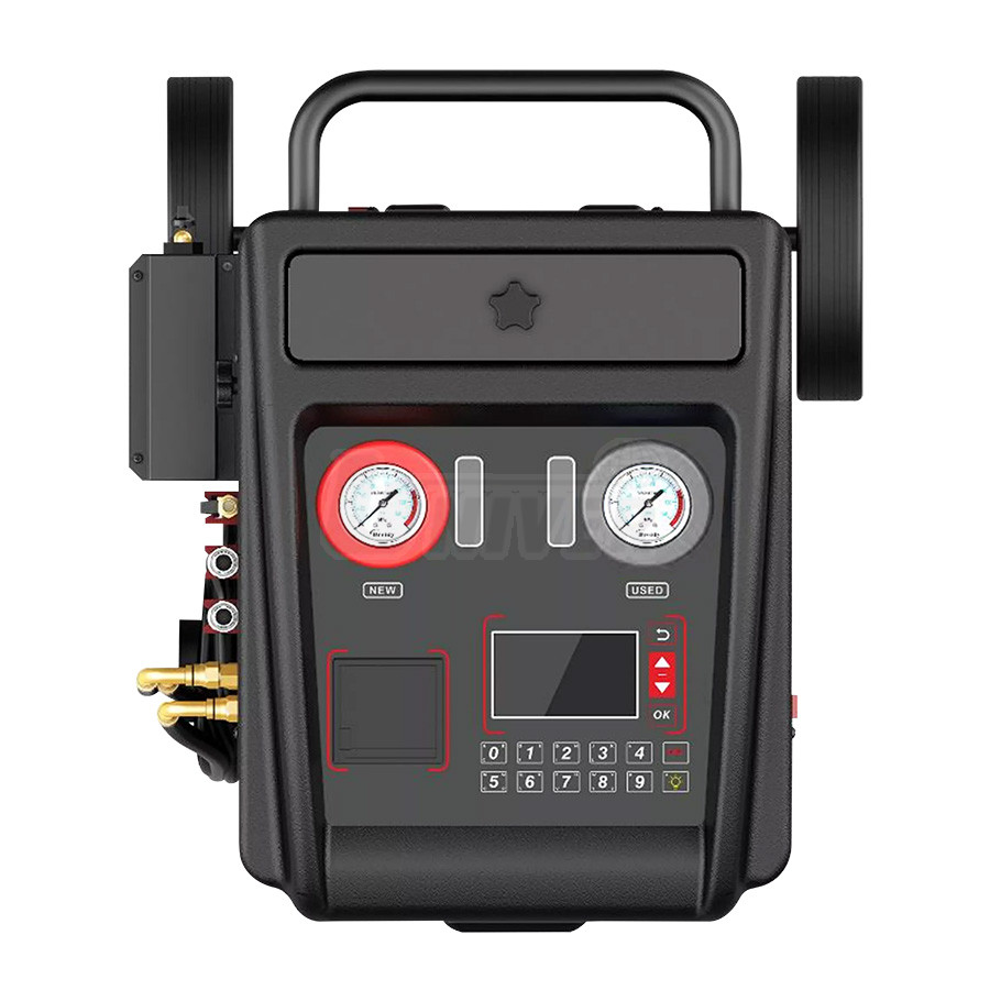 Pojízdný přístroj pro výměnu oleje v automatických převodovkách umožňuje v automatickém procesu odebrání opotřebeného oleje, proplach a naplnění novým olejem.- přístroj pracuje automaticky, takže výměnu oleje podle předpisu výrobců lze provést velmi kvalitně, snadno a rychle, bez námahy, při zachování nezbytné čistoty