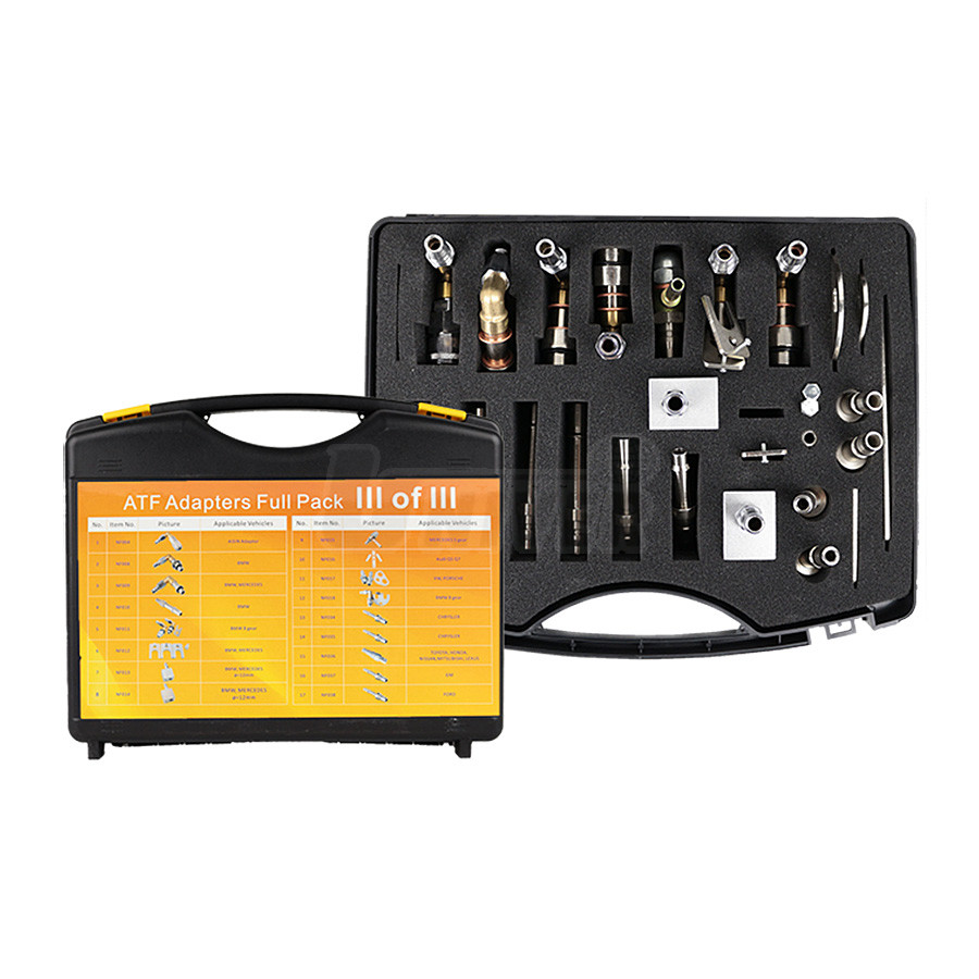 AC-CAT-ATF-KIT-3 – ATF Adapter European Pack 3, sada adaptérů NF004 (Aisin Adapter), NF008 (BMW), NF009 (BMW, Mercedes-Benz), NF010 (BMW), NF011 (BMW 8 Gear), NF012 (BMW, Mercedes-Benz), NF013 (BMW, Mercedes-Benz Ø 12 mm), NF014 (BMW, Mercedes-Benz Ø 12 mm), NF015 (Mercedes-Benz 5 Gear), NF016 (Audi Q5, Q7), NF017 (VW, Porsche), NF018 (BMW 8 Gear), NF034 (Chrysler), NF035 (Chrysler), NF036 (Toyota, Honda, Mitsubishi, Lexus), NF037 (GM), NF038 (Ford)
